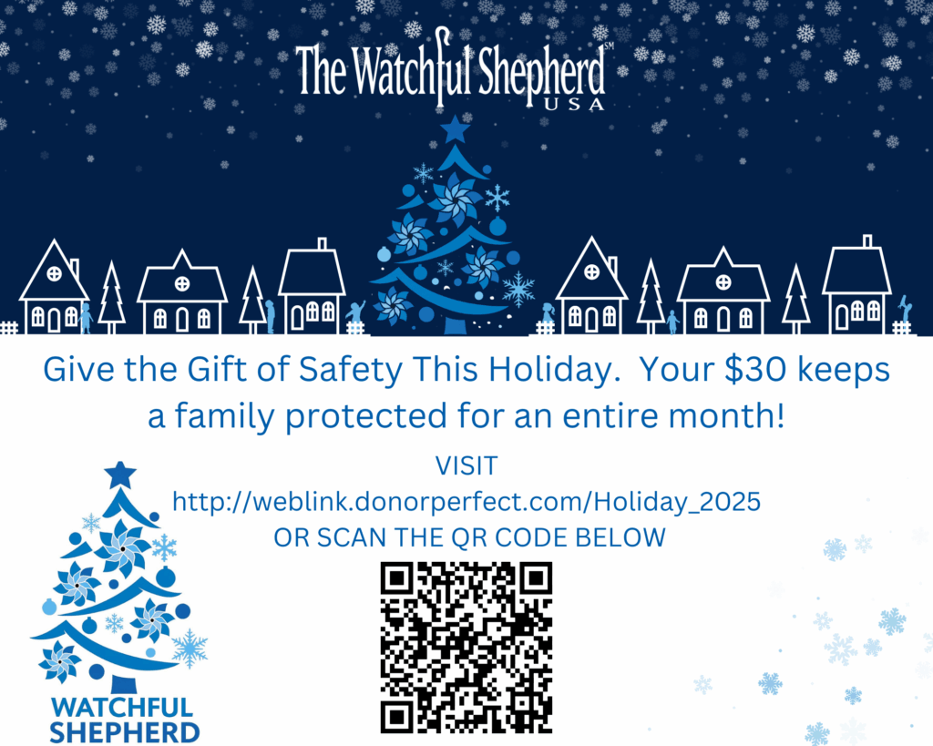 Through WCCF Gives, every gift to Watchful Shepherd USA is matched, doubling your impact. Just $25 can provide hope and protection, while $100 covers four months of security for an entire family.